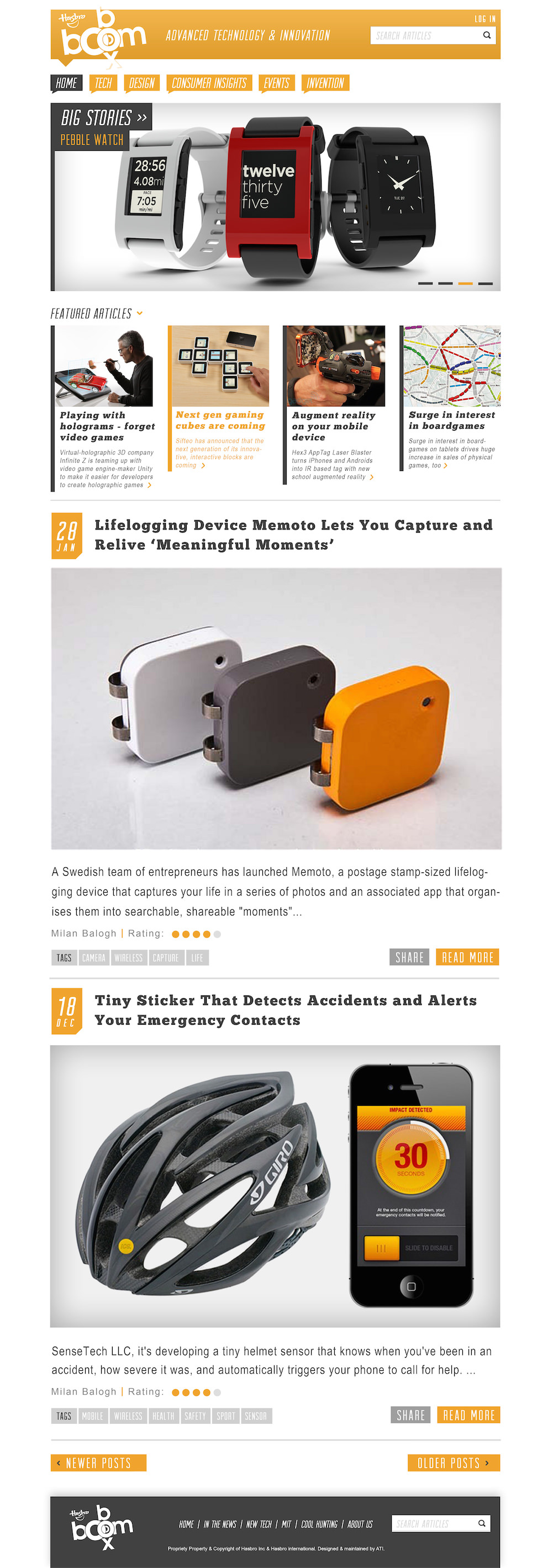 During my time as an engineering co-op at Hasbro I was also able to utilize my skills in graphic and web design and led an overhaul redesign of Hasbro’s internal technology blog. I brought a clean and refreshed look to their site as well as to their other internal marketing materials.