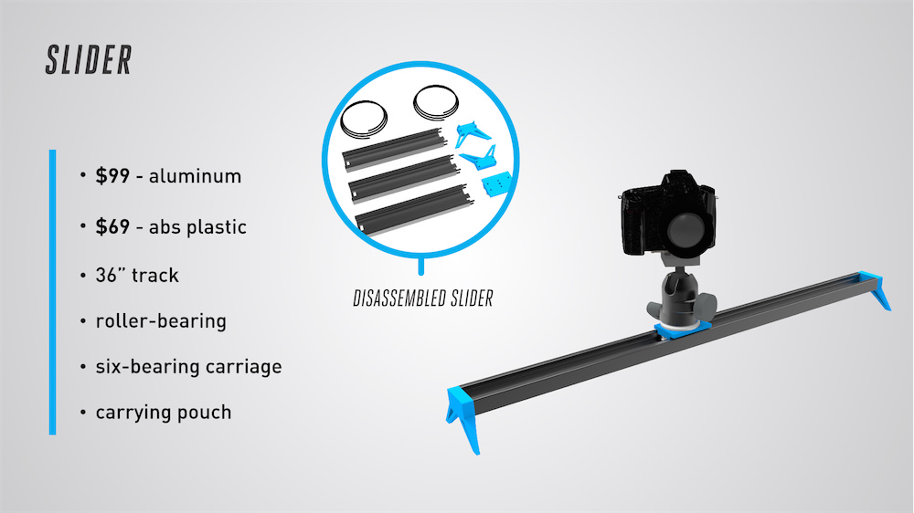 One of these tools is the camera slider, a common tool in most any filmmaker's arsenal which allows them to achieve smooth tracking shots. The problem with sliders are that they are generally expensive and too bulky to carry around anywhere.