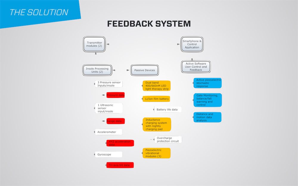 Vibrasole is a smart insertable shoe insole that helps elderly people monitor and manage their balance while walking & standing through low random vibrations to the sole while also providing comfort and preventative help for diabetic users experiencing foot ulcers through low-level light therapy.